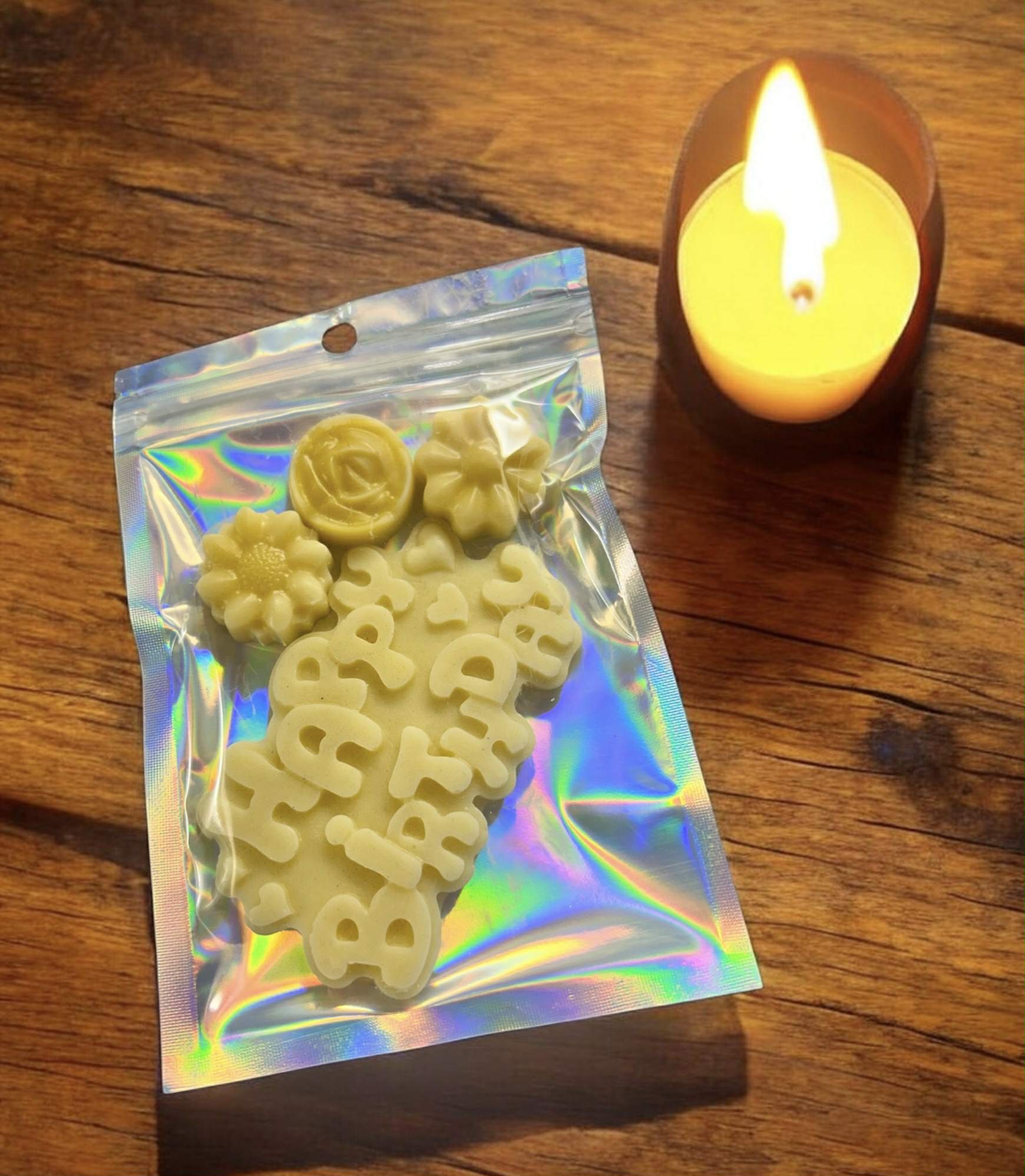 Make their special day sparkle with this beautifully presented Happy Birthday wax melt pouch, filled with handcrafted melts in a fresh, uplifting Lemongrass fragrance. Each pouch includes a mix of letter melts spelling HAPPY BIRTHDAY alongside delicate floral shapes, all nestled inside a shimmering holographic bag that feels instantly gift‑ready.
